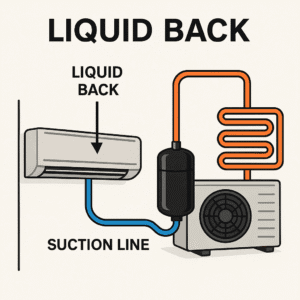 Liquid back adalah kondisi di mana refrigeran dalam bentuk cair kembali masuk ke kompresor, khususnya ke bagian suction line (saluran hisap). Padahal, refrigeran seharusnya kembali ke kompresor dalam bentuk gas uap setelah menyerap panas dari ruangan.